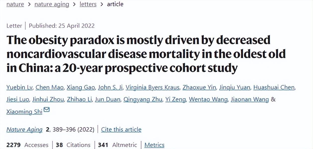 期刊《自然-衰老》發表了一項關於肥胖與老年人死亡率下降關係的研究,通過長達20年對2.7萬餘名80歲及以上高齡老人的隨訪數據分析結果來看: