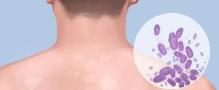 又名白色糠疹,爲圓形或橢圓形的淡白斑,皮損邊界不清、表面會有細小鱗屑。具體病因尚不明確,可能與感染、營養不良、維生素缺乏、風吹日曬、皮膚乾燥等有關。