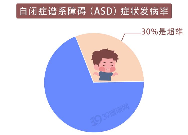 而且與一般人羣相比,性染色體異常的兒童自閉症譜系障礙(ASD)症狀的發病率更高,其中超雄患兒的發病率達到了30%。