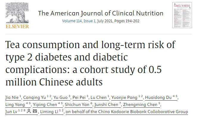 喝茶有利於糖尿病風險降低,2021年《美國臨牀營養學雜誌》就曾發佈過關於國人與糖尿病風險關係的研究,研究涵蓋了50萬成人樣本,歷經11年隨調查後發現,與過去一年從未喝過茶的人比,日常經常喝茶的人出現2型糖尿病風險要低8%。