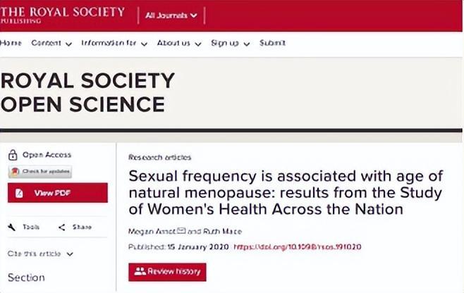 倫敦大學在《Royal Society Open Science》雜誌上,收集了2936名平均年齡爲45歲的女性信息。發現與每月發生性行爲的女性相比,每週都有性生活的女性絕經風險降低了28%。