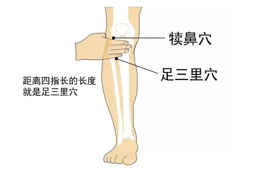 足三里位於小腿前外側,在外膝眼下3寸。按摩時可以拇指點按或點揉足三里,每側30秒,左右交替重複3~5次。按摩的力度以按壓後拇指指甲變白爲度。▲
