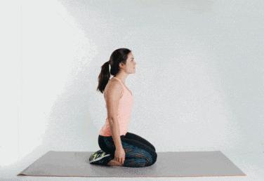 3、接着,臀部輕輕坐於腳掌或腳踝上,找到比較舒服的狀態,但不要直接將全身重量壓在腳後跟上。
