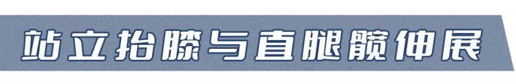 在站立狀態下,抬起一條腿,膝蓋向上,然後放下,重複進行。接着,換另一條腿,保持腿部伸直,從髖部開始將腿向後抬起,然後慢慢放回原位。