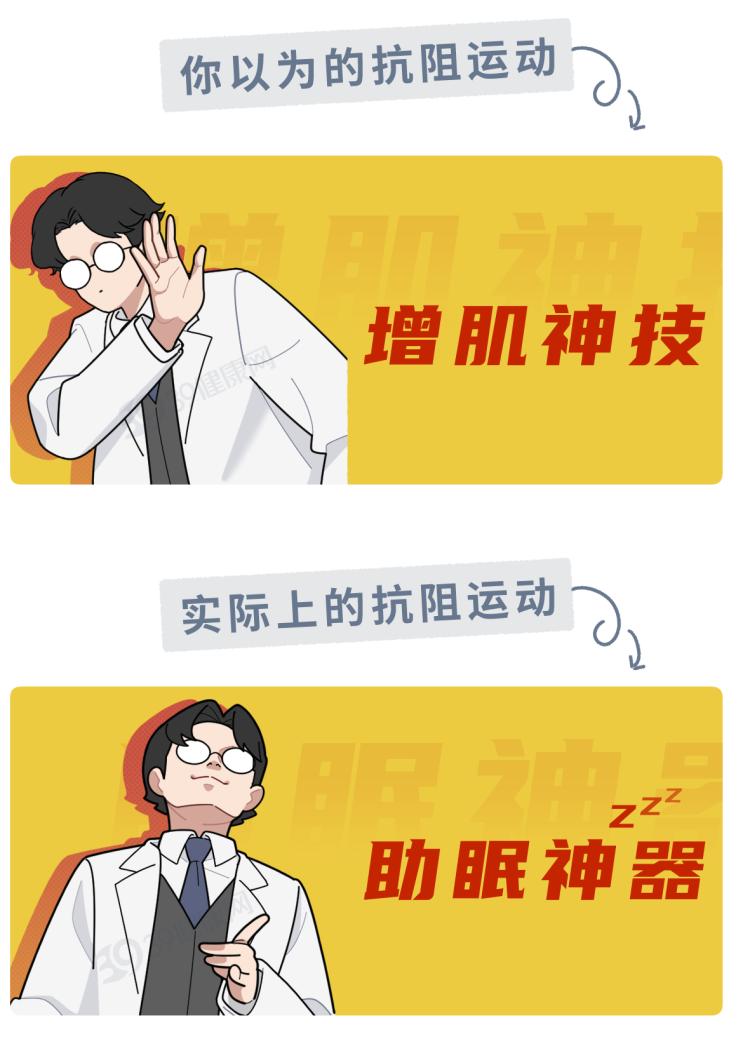 其實,不只是這種,廣義上的抗阻運動都可以助眠,如利用彈力繩、啞鈴、水等阻力來進行的運動,只要能增加身體負荷,就算是抗阻運動。