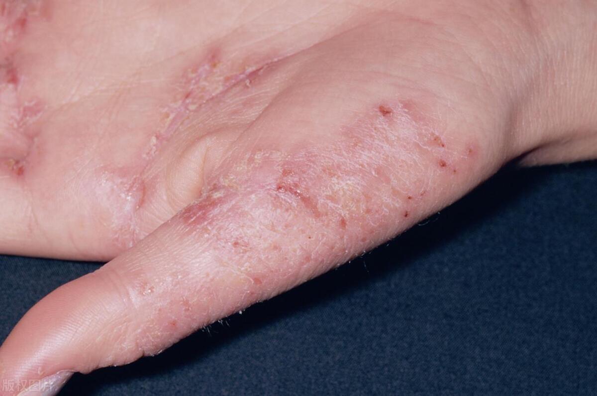 早期症狀爲紅色點疹,可相互融合成斑片規模。一般喫氨肽素片、甲氨蝶呤可治療,或者外用卡泊三醇軟膏緩解。