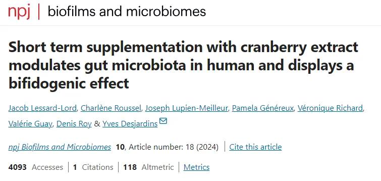 實驗結果證實,在補充蔓越莓提取物4天后,受試者腸道內雙歧桿菌丰度顯著增加、擬桿菌丰度明顯降低,這兩種變化都有助於改善腸道菌羣健康。