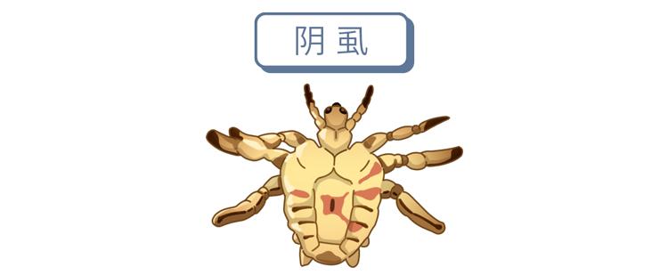 陰蝨顧名思義是生長在陰部的蝨子,其以吸食血液爲生,同時會排出有毒的唾液。陰蝨具有很強的繁殖能力,每天可繁殖40~50個,這些卵牢固地粘附在陰毛上,孵化出幼蟲後,再經過一段時間的生長髮育成爲成蟲,整個過程大約需要一個月到兩個月的時間。除了在私處寄生外,還可能會傳播到腋窩、睫毛等有毛髮的部位。