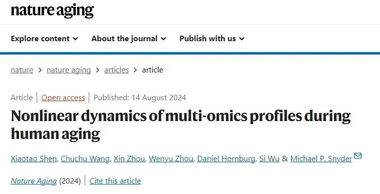 研究人員對108位年齡在25-75歲之間的參與者進行了6.8年的追蹤隨訪,定期收集各項有關衰老指標的生物樣本數據,最終一共收集了5405份樣本,採集了超過13萬多個生物學特徵,得出了2400多億個不同的數據點,結果發現:衰老並不是勻速發生的,40歲和60歲後人體內與衰老相關的分子會出現急劇變化。