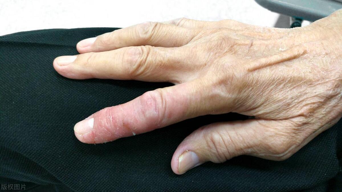 4、圖C:只有指節中間一部分軟組織腫大,這是鼓槌形杵狀指。