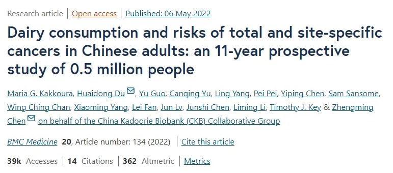 2022年5月,北京大學聯合英國牛津大學等機構發表在《BMC Medicine 》期刊上的一項研究指出,中國人常喝牛奶,與肝癌、乳腺癌等癌症風險上升有關。