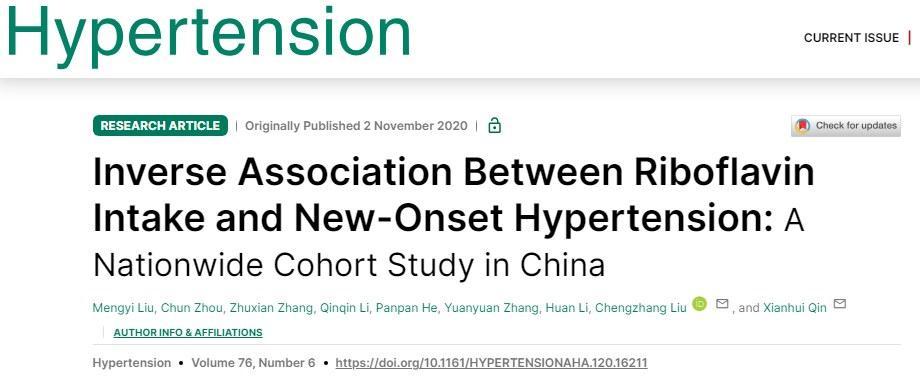南方醫科大學南方醫院曾在全球知名期刊《Hypertension》上發佈過一篇相關研究實驗,研究員把1.2萬餘名隊列研究中的參與者數據,通過分析他們過去1周的飲食情況,得出不同維生素B2攝入量情況下,攝入維生素B2較多的人比起攝入量低的人,高血壓風險下降了26%。