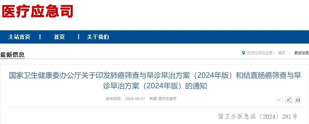 8月27日,國家衛生健康委發佈了《肺癌篩查與早診早治方案(2024年版)》。