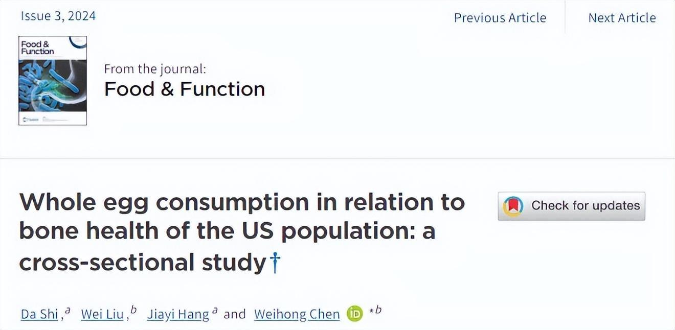 《食物與功能》上曾發表過一項由加拿大阿爾伯塔大學、華中科技大學同濟醫學院研究人員聯合進行的研究,研究人員將美國國家健康與營養檢查調查內的19208名受試者數據納入了研究,分析受試者的骨密度和雞蛋食用量信息。