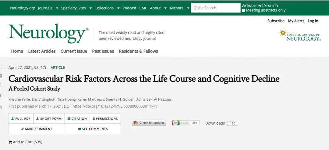 《神經 病學》期刊上曾經發表過一項研究,研究人員將4項涉及15001名受試者的研究進行了薈萃分析,分析不同年齡段心血管風險因素對認知障礙的風險。