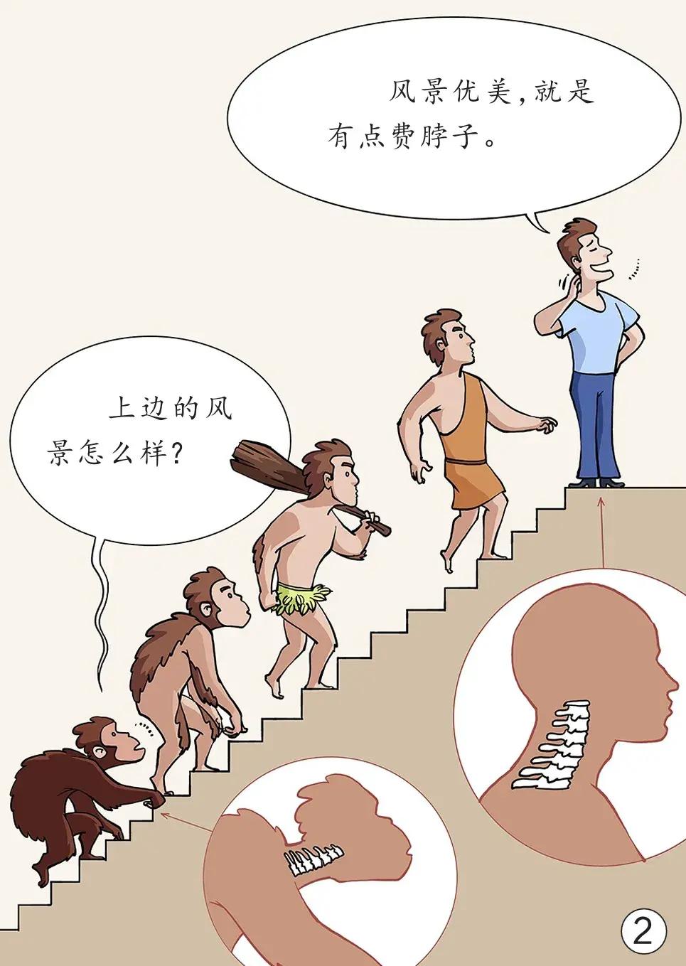 經過數百萬年的演化,靈長類進化成了直立行走的人類。與此同時,頸椎也經歷了由水平到垂直的劃時代改變。