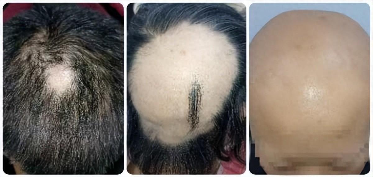 從左到右依次爲:輕度、中度、重度斑禿