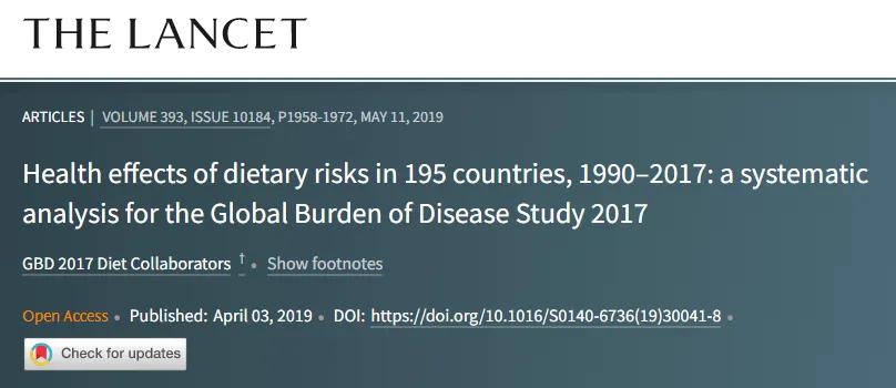 《柳葉刀》雜誌上發佈的一項涉及195個國家、時間跨度30年的研究指出,全球每年約有22%的死亡率與不良飲食習慣相關。而我國因飲食問題造成的心血管疾病、癌症死亡率,在世界範圍內排名第一。