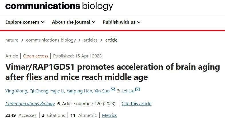 該研究在果蠅、老鼠身上探究了Vimar/RAP1GDS1基因在中年後對大腦的影響,結果發現大腦在中年(壽命後1/3)和後1/10會有兩個明顯的衰老轉變節點。