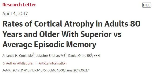 而且更有研究表示,大腦的衰老速度很有可能還會影響壽命的長短。《美國醫學會雜誌(JAMA)》上的一項研究指出,長壽老年人腦內的皮質層厚度的普通老人的2倍;皮質層越厚說明大腦的衰老速度越慢。