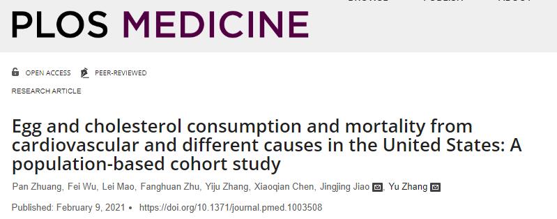 浙江大學生物系統工程以及食品科學學院的研究人員曾在《PLOS Medicine》上發表過一項研究,研究人員對超52萬人的數據進行了調查,分析後發現雞蛋和膽固醇攝入與更高的心血管疾病、癌症以及全因死亡率相關。