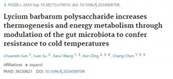 近日,中國科學院生物物理研究所陳暢研究組與中國科學院上海藥物研究所丁侃研究組合作,在美國實驗生物學聯合會出版的《The FASEB Journal》雜誌在線發表論文首次揭示了枸杞抗寒的機制,證明其確有“耐寒暑”功效。此前的2020年,陳暢研究組在同一雜誌發表研究證實,枸杞提取物能夠幫助骨骼肌重塑,具有類似運動鍛鍊的效果,可改善肌肉健康。這與《本草綱目》中記載的“久服堅筋骨,輕身不老,耐寒暑”,完全一致。