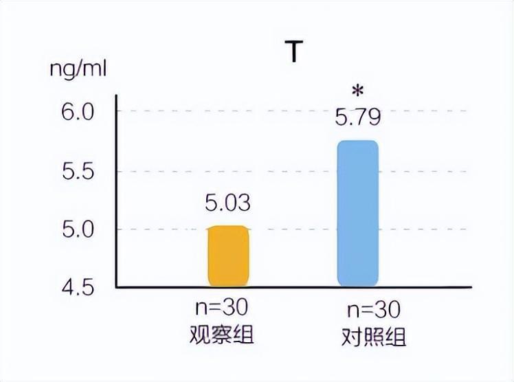 其中觀察組(黃色):十一酸睾酮膠丸;對照組(藍色):十一酸睾酮膠丸+麒麟丸