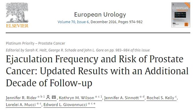《歐洲泌尿外科》上曾發表過一項哈佛大學進行的研究,研究人員對近3.2萬名美國男性的數據進行了分析,受試者在1992~2010年期間進行了多次問卷調查,分別報告了20~29歲、40~49歲的平均每月排精頻率,隨訪期間,共有3839例新發前列腺癌。