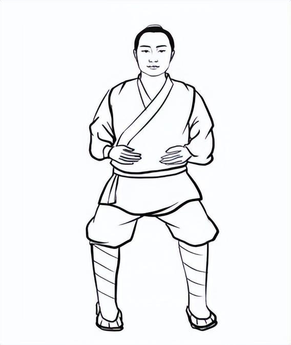 兩腳分開與肩同寬,膝蓋略微彎曲,兩手在胸腹前彎曲;然後調整身形,擺正頭部,下頜略微放鬆;用力部位集中在腳趾和前腳掌。從5分鐘左右開始,逐漸延長至每次20~30分鐘。