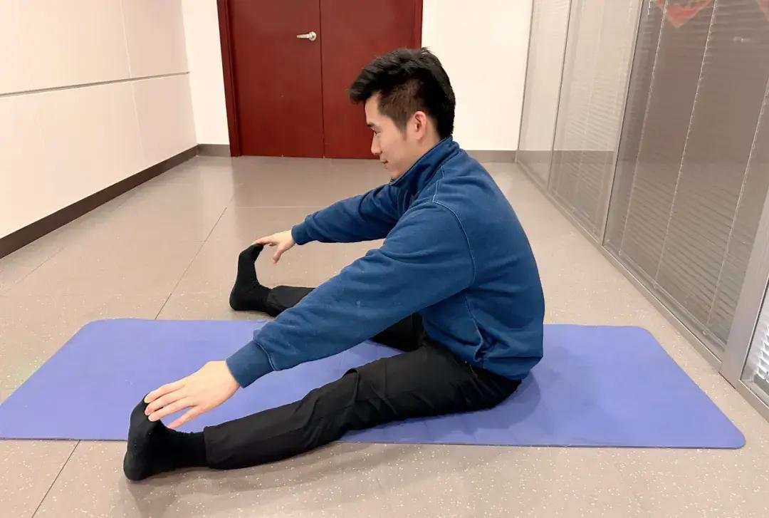 量力而行,練習時,不用刻意追求身體貼着腿的感覺,只要腿部有拉伸感就可以。