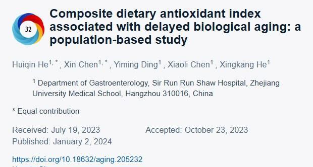 《衰老(Aging)》雜誌上一項研究對2.5萬餘名成年人進行了調查,通過問卷調查的形式收集了受試者的飲食信息,計算出綜合膳食抗氧化指數,結果發現攝入抗氧化飲食可延遲生物衰老。相較於抗氧化飲食攝入最低的受試者,最高組受試者表型年齡減少了0.52年。