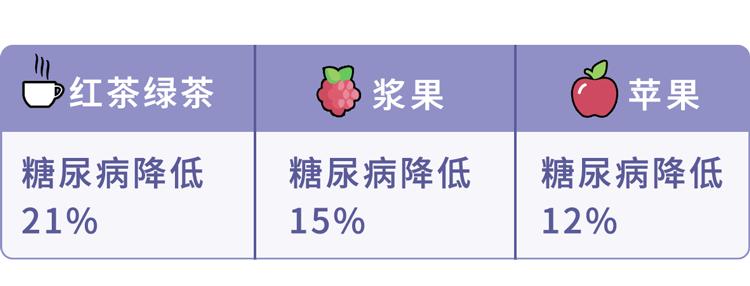 《Nutrition & Diabetes》也有研究表示,平均每天喫6種富含類黃酮的食物,能降低28%的糖尿病風險。