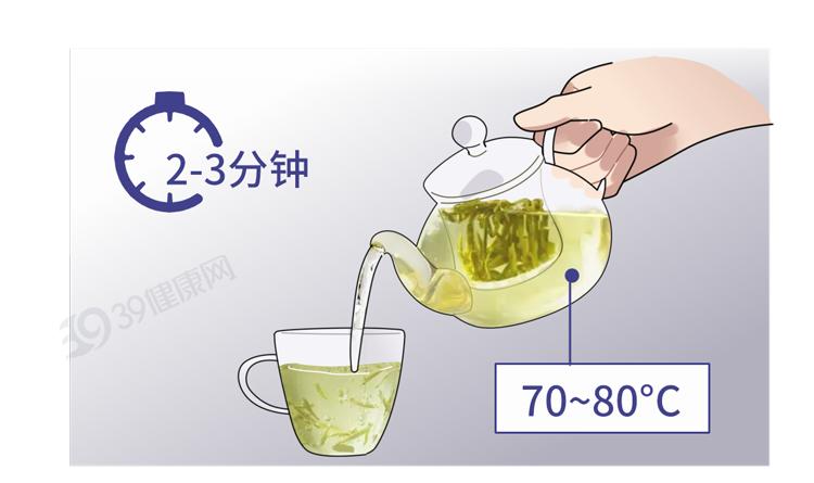 另外,茶葉同樣不適宜用過燙的水長期浸泡。綠茶用70~80°C的水浸泡2-3分鐘即可。