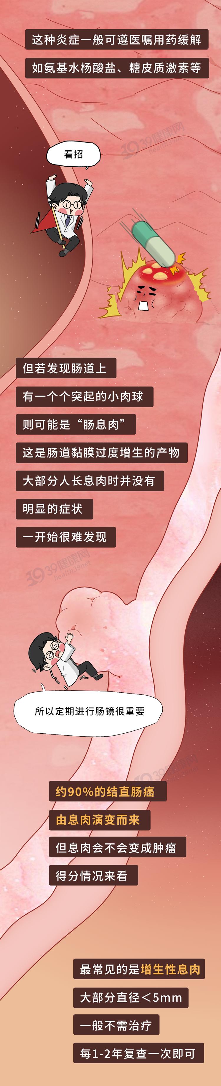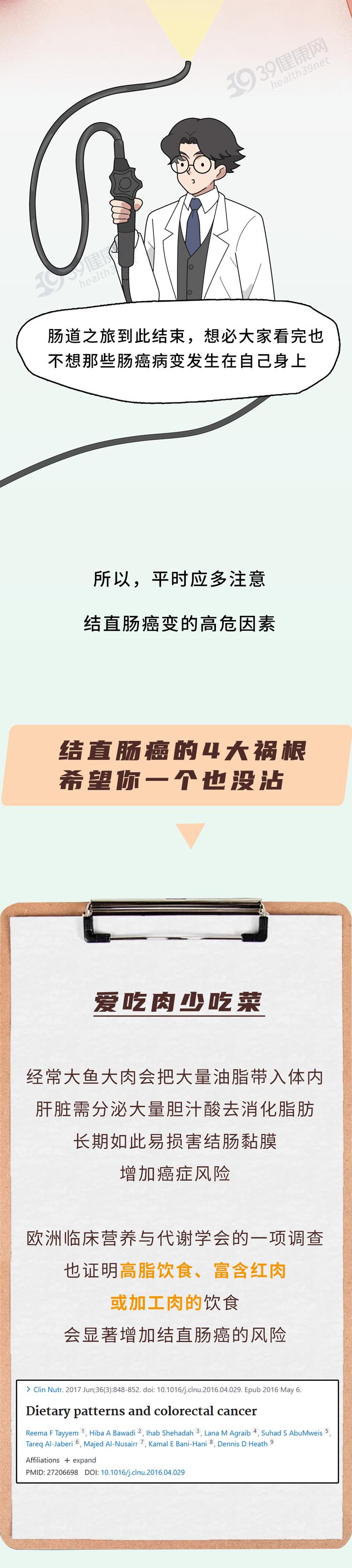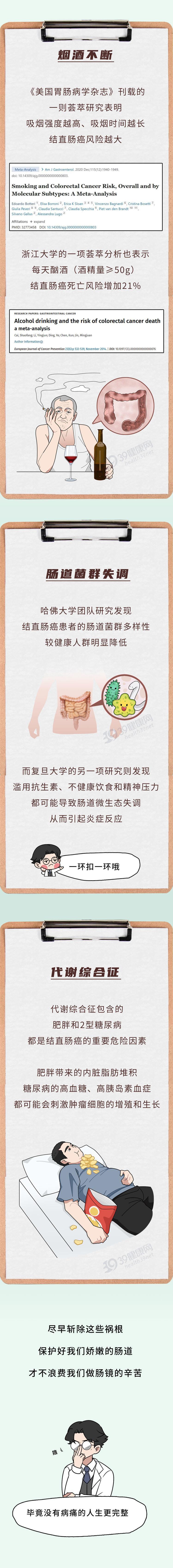 1. 有上述不良生活習慣/有結直腸息肉或結直腸癌家族史/有炎症性腸病/長期便祕腹瀉,不明原因腹痛、便血、消瘦/有代謝綜合徵的人羣,最好儘快安排做腸鏡檢查,沒有不舒服的,從45歲開始也應該每年查1次大便隱血,每10年查一次腸鏡