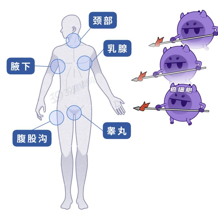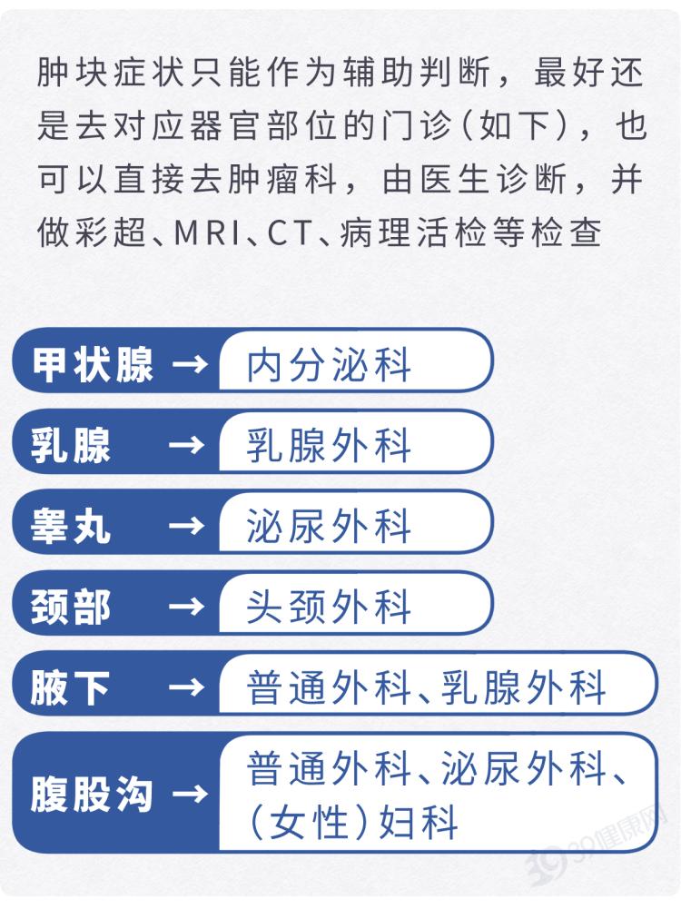 腫瘤細胞增生異常迅猛,聚在一起就可能形成腫塊或結節,尤其是乳腺、睾丸、頸部、腋下、腹股溝等地方需要特別注意。