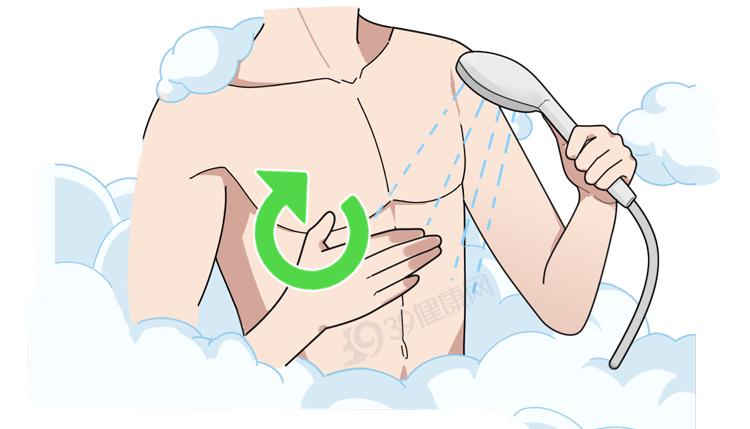 洗澡時,左手按右腋窩,右手按左腋窩,用手指適度地按摩捏拿,用力不宜重,每次按捏約3分鐘即可。