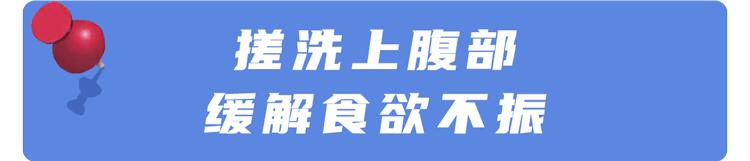 胃口不好的人,可以用熱水淋浴上腹部,也就是肚臍往上一點的位置,同時用手掌順時針按摩5分鐘,可以促進胃腸部蠕動,有效緩解食慾不振。