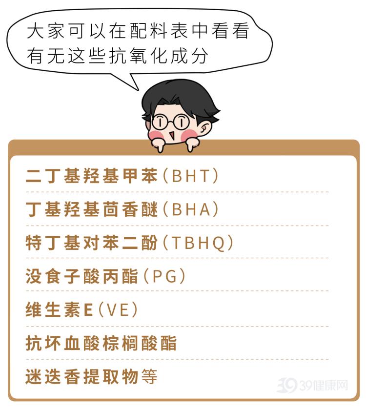 同時,購買符合標準的含抗氧化劑食用油也是不錯的選擇。符合我國《食品安全國家標準 食品添加劑使用標準》(GB 2760-2014)規定的抗氧化劑,主要有這幾種: