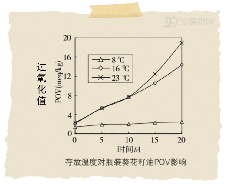 這項研究的另一個實驗則發現,在23℃環境下存放的葵花籽油,其氧化速度遠快於8℃儲存環境。