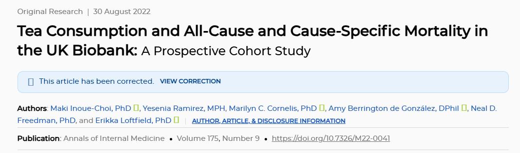 22年《內科學年鑑》的一項研究發現:與每天喝≤1杯茶的人相比,每天喝茶2-3杯的人死亡風險更低。