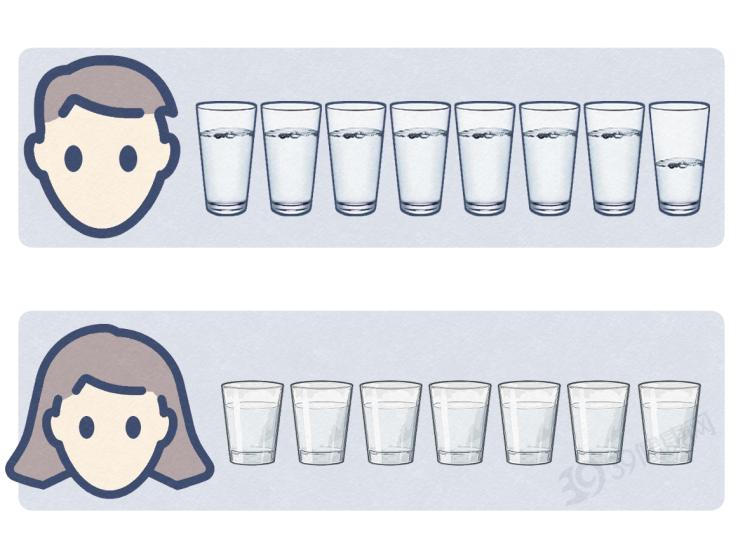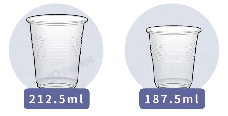 如果按一天喝8杯來算,那麼男性要用212.5ml的杯子,女性則要用187.5ml的杯子,大概是中號一次性杯子和小號一次性杯子的大小。