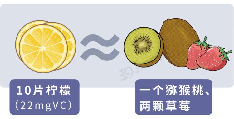 但1片檸檬只有約2.2mgVC,得整個10片才能抵上一個獼猴桃或2顆草莓,爲啥不選擇直接喫更美味的後者呢?