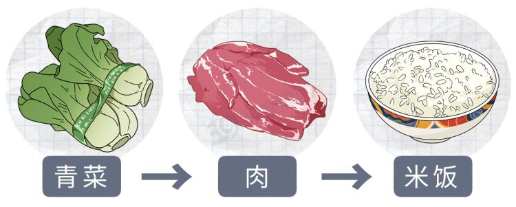 肉食飽腹感強,如果先喫肉,你很可能就喫不下蔬菜了,這樣就容易缺乏膳食纖維和各種維生素。