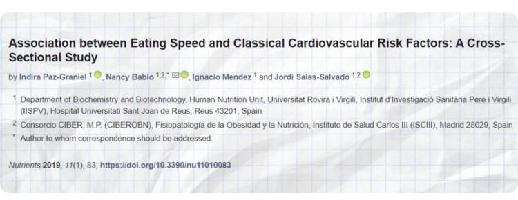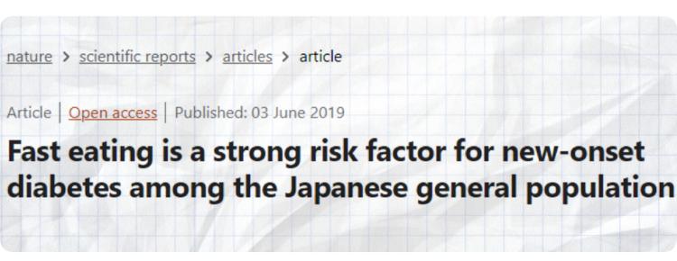 [1]Kudo, A., Asahi, K., Satoh, H. et al. Fast eating is a strong risk factor for new-onset diabetes among the Japanese general population. Sci Rep 9, 8210 (2019).