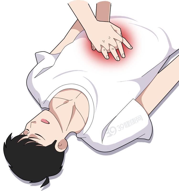 按壓幅度和頻率爲:胸骨下陷5~6釐米(成年人),每次按壓後胸廓充分回彈,雙手不離開胸壁,頻率100~120次/分。