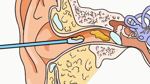 用棉籤掏耳朵時,可能會把它推到更裏邊去,越積越多。過程中頻繁的摩擦和損傷,會影響耵聹的脫落,形成耵聹栓,堵塞耳道。如果皮膚被劃傷,細菌還會趁機進入引發感染。