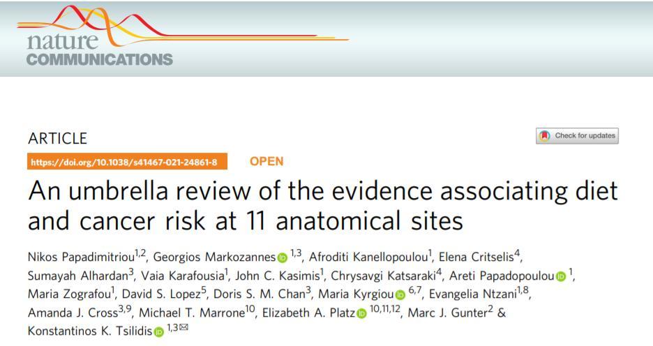 發表在《自然通訊》上的一項研究,通過對860項觀察性研究分析得出,有11種腫瘤與“喫”,即食物的攝入確切相關。