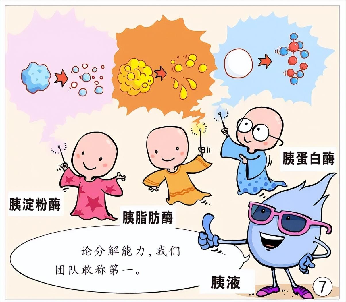通過這些酶的協同工作,胰液能對蛋白質、脂肪和碳水化合物進行全面而細緻的分解,確保食物中的營養物質能被人體吸收。