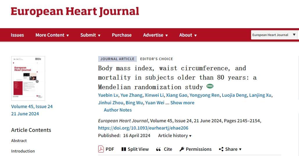 2024年4月,中國疾病預防控制中心施小明/呂躍斌研究團隊發表在《歐洲心臟雜誌》上的研究指出,老年人體重微胖或更長壽。