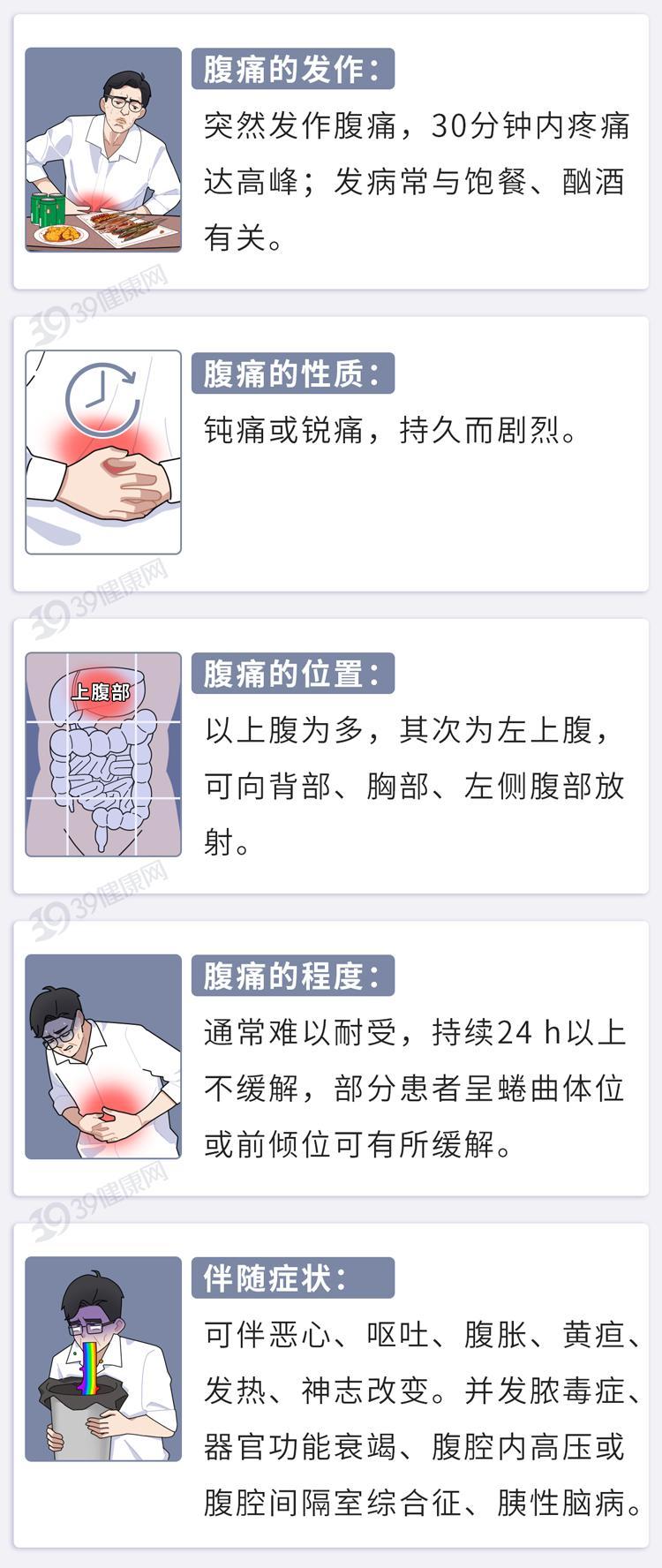根據《急性胰腺炎急診診斷及治療專家共識》,急性胰腺炎引起的腹痛,通常有以下5種特徵。